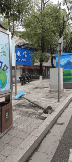 2、冷水滩区凤凰街道春江路与梧桐路交叉口春江路中间交通太阳能板指示牌倾倒(已修复);